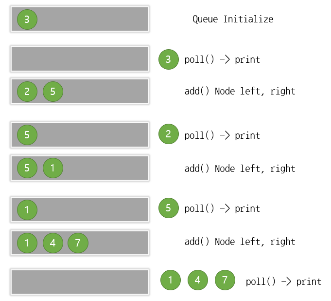 - 제공된 데이터를 Level 순으로 출력 ( 정수 데이터를 공백으로 구분하여 한줄로 출력 )
